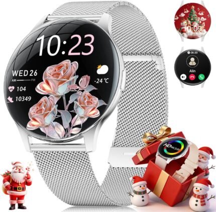 Women’s Smartwatch with Calls – 7.99 mm Ultra Thin Elegant Fitness Watch with 1.43 Inch HD Always-On Display, IP68 Waterproof, 100+ Sports Modes, Women’s Health for iOS Android, Silver