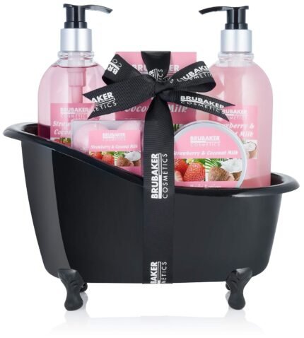 Brubaker 8-Piece Bath Gift Set with Decorative Bathtub, Black