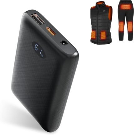 Amiable Powerbank fur Heizweste, 10000mAh 5V / 7.4V Akku pack für beheizte Weste, Powerbank für beheizte Hoodies, Jacke mit DC/USB/Typ-C-Ausgang, LED-Anzeige (Unterstützung Schnellladung)