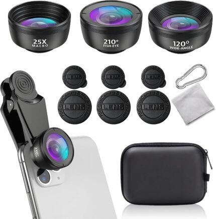 3 in 1 Mobile Phone Camera Lens, Macro Lens, Mobile Phone, HD 210° Fisheye Lens, 120° Wide Angle, 25X Macro Lens, for Most Smartphones