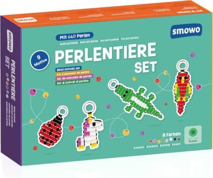 Smowo Pearl Animals Craft Kit with Beads for 9 Animal Key Rings, Craft Box for Children for Threading and Crafts