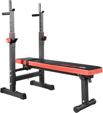 Train Hard® Folding Weight Bench with Cast Iron Weights, with Height-Adjustable Dumbbell Stand and Robust Barbell, Includes 34/48/60 kg Dumbbell Set