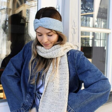 myboshi Knitting Set Headband Swing for Beginners Including Yarn, Wool Needles, Stitch Marker, Instructions and Label, 76% Cotton, 22% Baby Alpaca, 2% Merino Light Blue with Needle Set
