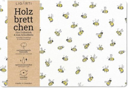 Ligarti® Breakfast Board (Wood) I Chopping Board in 22 x 15 cm Made in Sweden and Dishwasher Safe I Sustainable Breakfast Board, Wooden Board (Beeswarm)