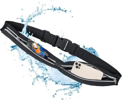 Bum Bags with Water Resistant Belt, Slim Running Belt for Men and Women, Adjustable Running Gear, Black, Sporty Style, black, Sporty style