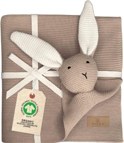 DIKOS® Original Baby Blanket Cuddly Rabbit Cappuccino 100% Organic Cotton Newborn Blanket Cuddly Blanket Knitted Blanket Girl/Boy Cuddly Blanket Baby First Essentials Gift at Birth