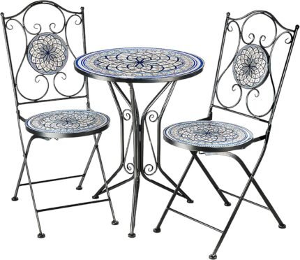 Kobolo Garden Furniture Mosaic Look 1 Table 2 Chairs Metal Blue / White