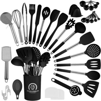 Price: (as of – Details) Premium 45-piece kitchen utensils set – cooking spoon set made of food-safe silicone and rust-proof