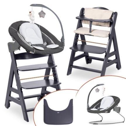 hauck Beta+ Newborn Set Deluxe – Baby High Chair Set from Birth with Newborn Attachment Bouncer, Seat Pad and Dining Board – Dark Grey