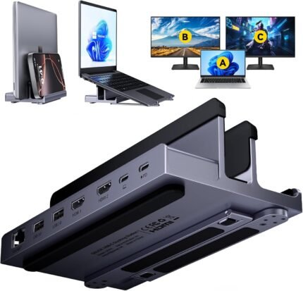 Laptop Docking Station Stand Dual 4K Monitor, QUUGE Dual HDMI Docking Station for Laptop, 2 HDMI (Single 4K@120Hz), 2 USB 3.0 Ports, 100W PD, RJ45 Ethernet, Desktop Management 7-in-1 USB C Dock