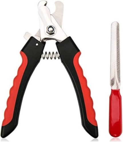 Nail Clippers for Dogs and Cats, Stainless Steel Nail Clippers with Safety Protection, Red/Black, with Nail File, Claw Care Tool