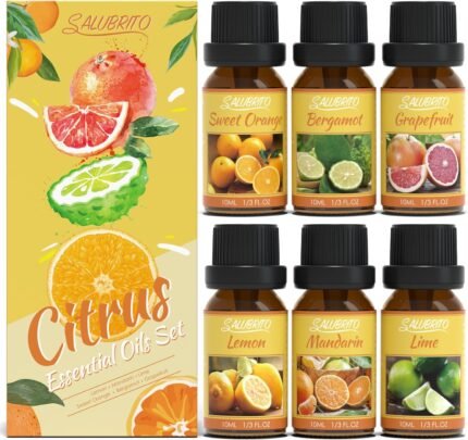 SALUBRITO Citrus Essential Oils Set, Natural Citrus Fragrances Fragrance Oils for Diffuser – Sweet Orange, Bergamot, Grapefruit, Lemon, Mandarin, Lime Aromatherapy Oil