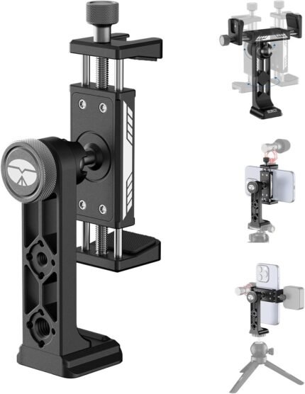 SIRUI Smartphone Tripod Adapter with Arca Plate with 360° Ball Head, 2 Cold Shoes & 1/4″/3/8″ Threads, Universal Mount for iPhone, Galaxy, Pixel and More, AM-PH03