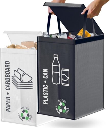 2-Way Waste Separation System – Set of 2 Waste Separation Systems for Plastic and Paper – Recycling Container 50 L with Handle – Waste & Recycling Solution – Kitchen Waste Separation System – Waste Paper & Plastic