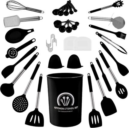 Price: (as of – Details) LSFCHUJU 25-piece kitchen cooking utensils set, silicone kitchen utensil set with utensil holder, heat-resistant cooking