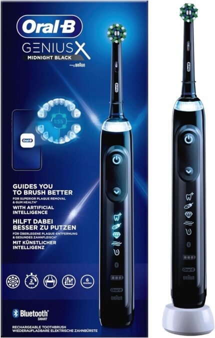 Oral-B Genius X Electric Toothbrush, 6 Cleaning Modes for Dental Care, Artificial Intelligence and Bluetooth App, Gift for Men / Women, Designed by Braun, Black