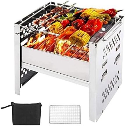 Tragbarer Holzkohlegrill – Zusammenklappbares Kochausrüstung Inklusive Tragetasche | Barbecue Grill – Geeignet für Kochen Picknick Backpacking Tailgating Terrasse BBQ Garten