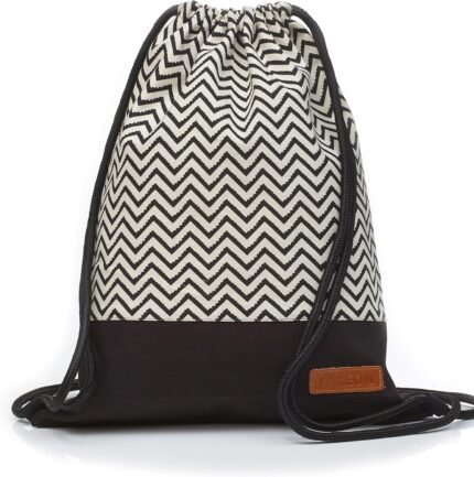 LEON Gym Bag with Inner Pockets Zip Backpack Bag Women’s Men’s Gym Bag Draw String Black
