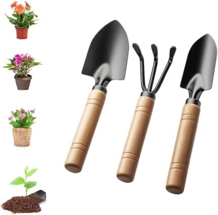 Ruayia Garden Tool Set, 3-Piece Mini Garden Tools Set, Garden Shovel Small, Wooden Handle, Handy Shovel, Gardening Small Shovel for Bonsai Tool, Plant, Potted Flowers, Loose Ground