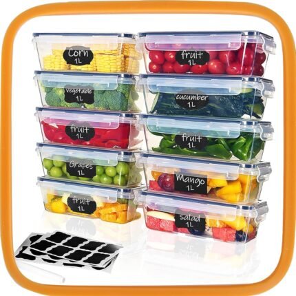 Hibisaws Food Storage Boxes 100% Airtight with Lid, Pack of 10 x 1 L, BPA-Free – Ideal for Freezer, Fridge, Microwave & Lunch Box