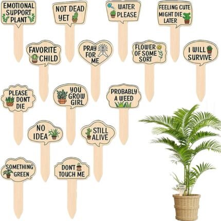 Plant Labels, Garden Plant Markers, 15X Waterproof Wooden Stakes, Funny Saying for Labeling, Outdoor and Indoor Gardening Supplies, Weatherproof Greenhouse Pots Signs