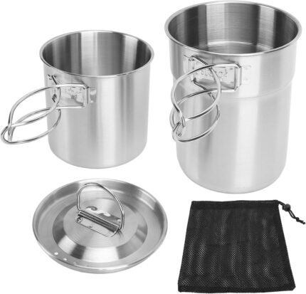 Foldable Camping Cookware, 304 Stainless Steel, Multifunctional Portable Cups, Mugs, Pot with Lid, Lightweight Outdoor Cooking Set, Easy Storage, Durable Travel Gear