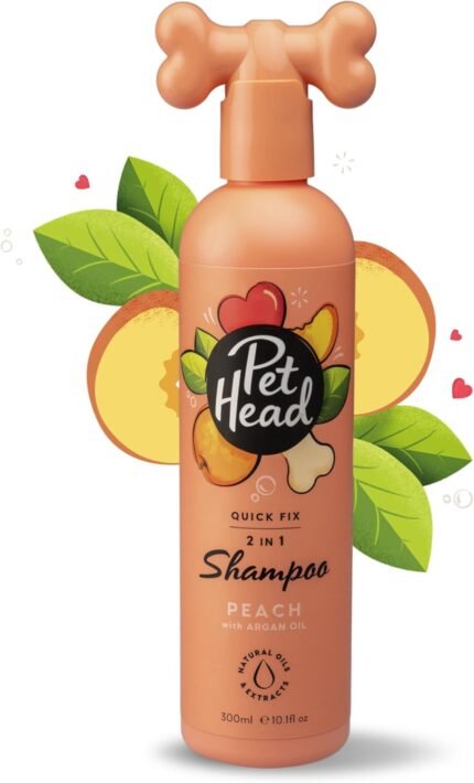 Pet Head Dog Shampoo, Quick Fix 2-in-1 Shampoo and Conditioner for Dogs Peach, 90413A, 300 ml (Pack of 1)