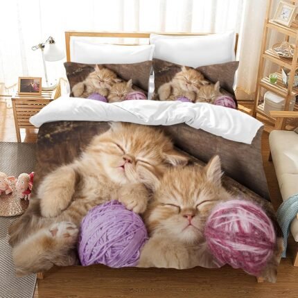 Bed Linen 135 x 200 cm Children’s Cat Duvet Cover 135 x 200 cm 2-Piece Reversible Bed Linen 3D Cute Pets Soft Microfibre Bedding Sets with Zip and 1 Pillowcase a.5566