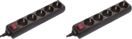 as – Schwabe 5-Way Power Strip Black with Switch 230 V / 16 A – Multiple Plug with 1.4 m Cable & Touch Protection – Sockets Rotated 45° – Multiple Socket Indoor – IP20, 35012
