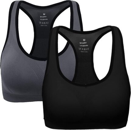 ANGOOL Sports Bra Women’s Racerback Push Up Sports Bustier Women’s Padded Strong Hold Seamless Jogging Yoga Fitness Bra