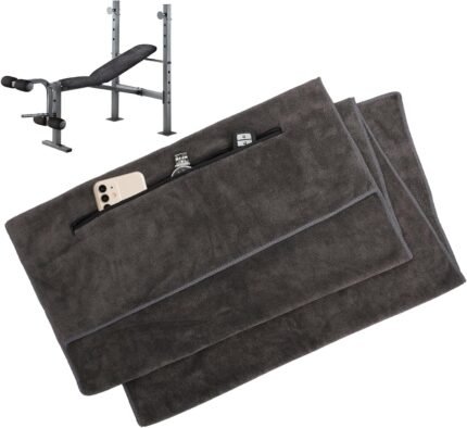 Fitness Towel 120 x 50 cm – Gym Towel, Sports Towel Gym – Microfibre Towels with Zip Pocket and Attachment Hood for Sports, Yoga, Relaxation and Outdoor Use (Grey)