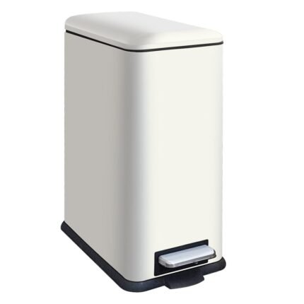 Kitchen Rubbish Bin, 30 L, Narrow Pedal Bin with Lid, Stainless Steel Kitchen Rubbish Bin with Inner Bucket, Rectangular Waste Bin for Kitchen, Bathroom, Bedroom, Office, White