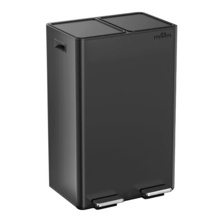 mVm Kitchen Rubbish Bin, 60 Litre Pedal Bin, 2 x 30 L Double Waste Bin, 2 Rubbish Bin, Waste Separation with Inner Bin, Steel, Airtight, Softclose Lid, Wide Robust Pedal