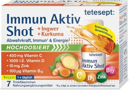 tetesept Immune Active Turmeric Ginger Shot [7 Drinking Bottles] High Dose with Vitamin D, C, B12 and Zinc – Multi-Nutrient Complex for the Immune System