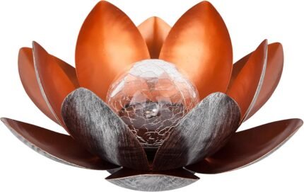 Dehner Lotus Solar Light, Diameter 27.5 cm, Height 12 cm, Metal, Silver/Red