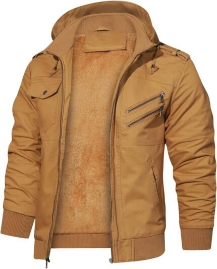 HOOD CREW Men’s Winter Thicken Fleece Lined Outerwear Tactical Military Cargo Jacket with Hood