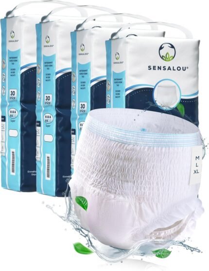 Sensalou Disposable Pants (Size L – 120 Pieces) Incontinence Nappies for Seniors, Adults Women & Men – Odour-Proof Protective Underwear for Urinary Incontinence