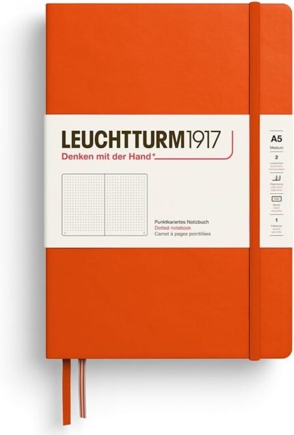 LEUCHTTURM1917 373982 Notebook Medium A5, Hardcover Writing Book, 251 Numbered Pages, Pumpkin, Dotted