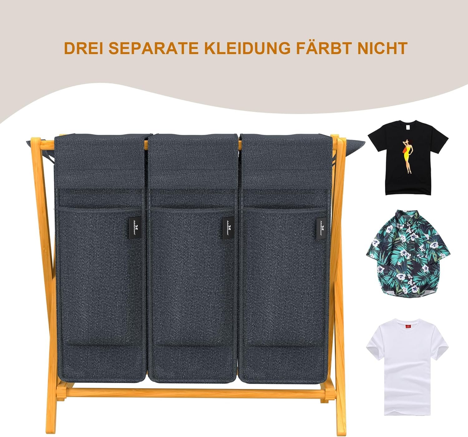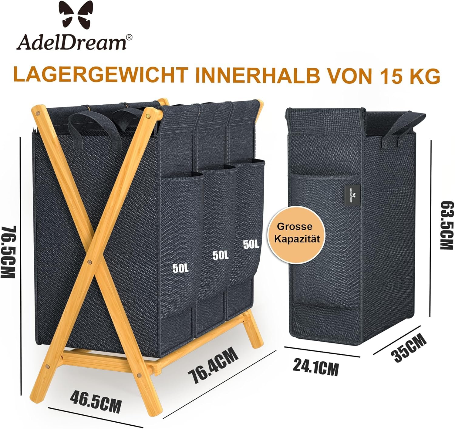 AdelDream foldable laundry baskets: AdelDream relies on natural raw materials and is popular with customers throughout Europe. Thanks to the breathable laundry bag, it will never smell musty again in your laundry room.