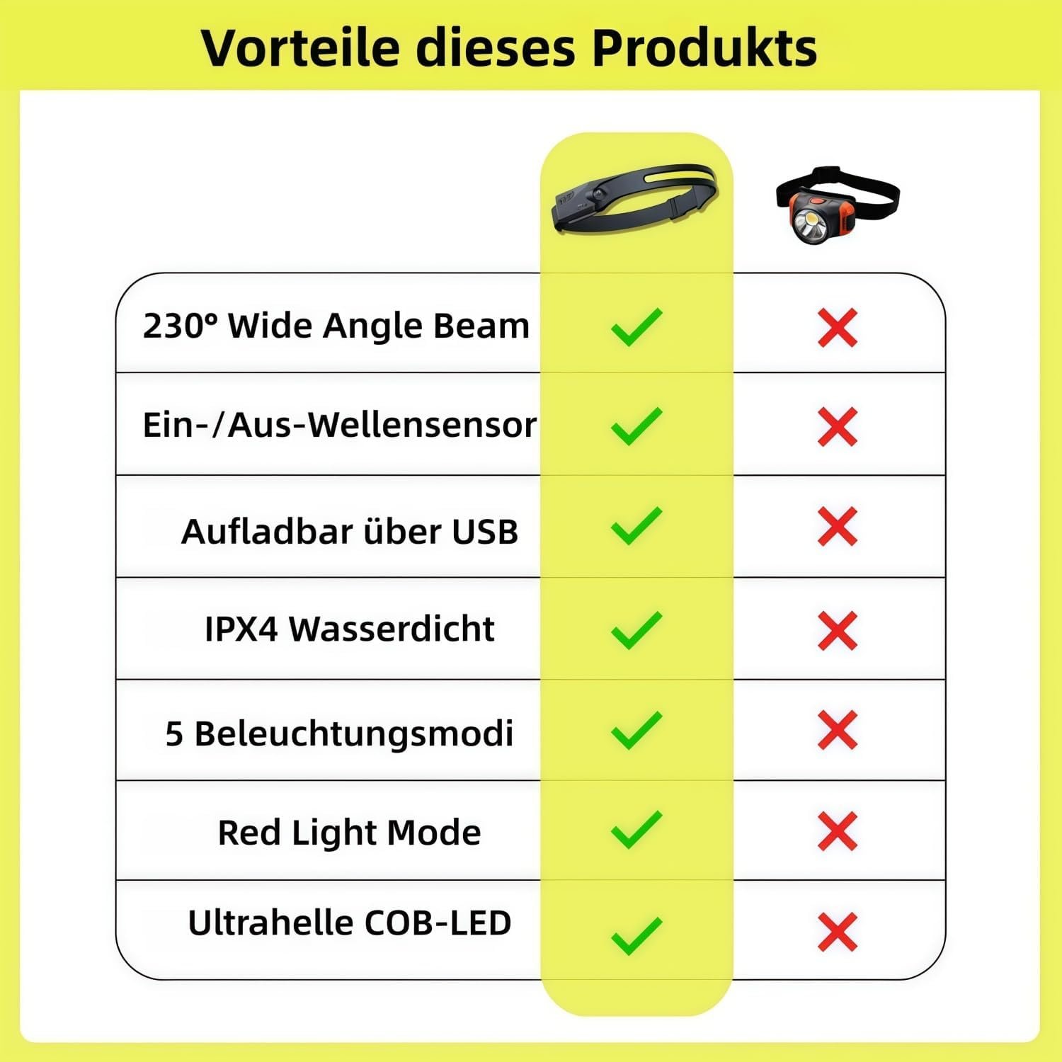 230° wide illumination: The Adventure Light 2.0 headlamp offers an exceptionally wide field of view thanks to modern COB technology for safe orientation at night.