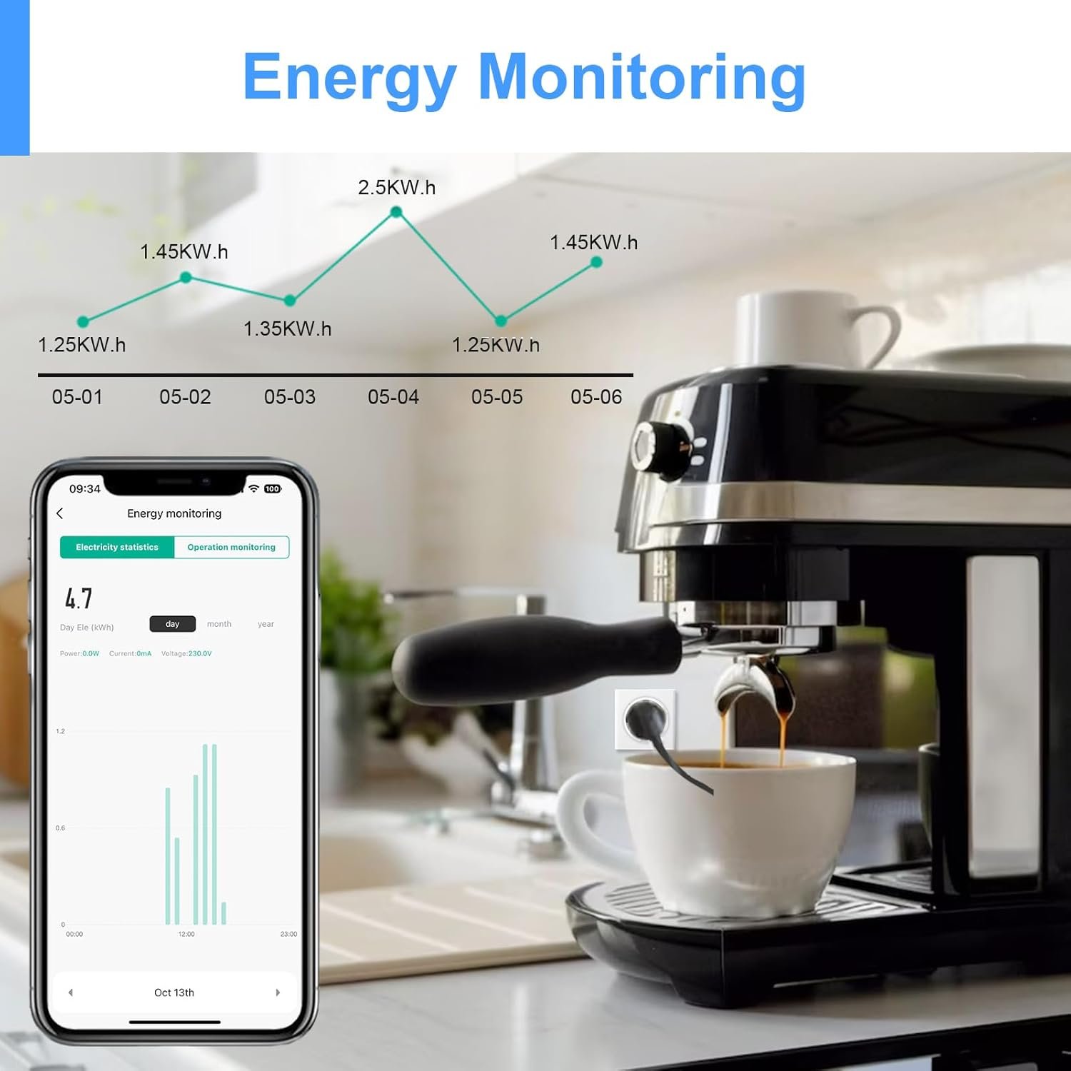 【Measurement of power consumption】: After connecting with the Smart Life app, you can see how much power the device consumes, with an accuracy in the range of one hour.