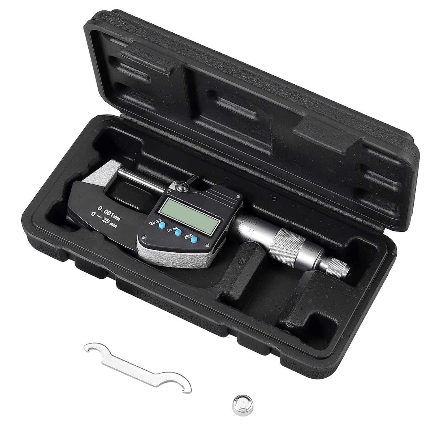 Measuring range: designed to pay attention to minor measuring errors and professional service, range: 0-25 mm, resolution: 0.001 mm / 0.00005 inches, accuracy: 0.002 mm / 0.0001 inches.
