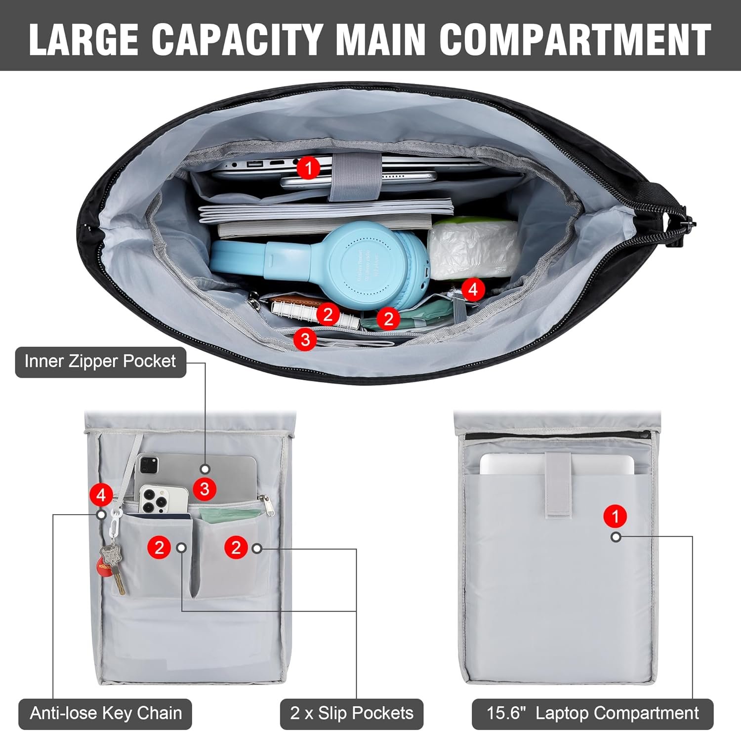 Versatile use: this rolltop backpack for women is the perfect companion for any occasion. Whether as a school backpack, sports bag or for weekend trips, it can be easily fixed thanks to the practical trolley attachment, which keeps your hands free. With its stylish design and multifunctionality, this backpack is suitable for both women and men. Ideal for travel, everyday life, leisure activities and as a practical laptop backpack – a real all-rounder for any situation