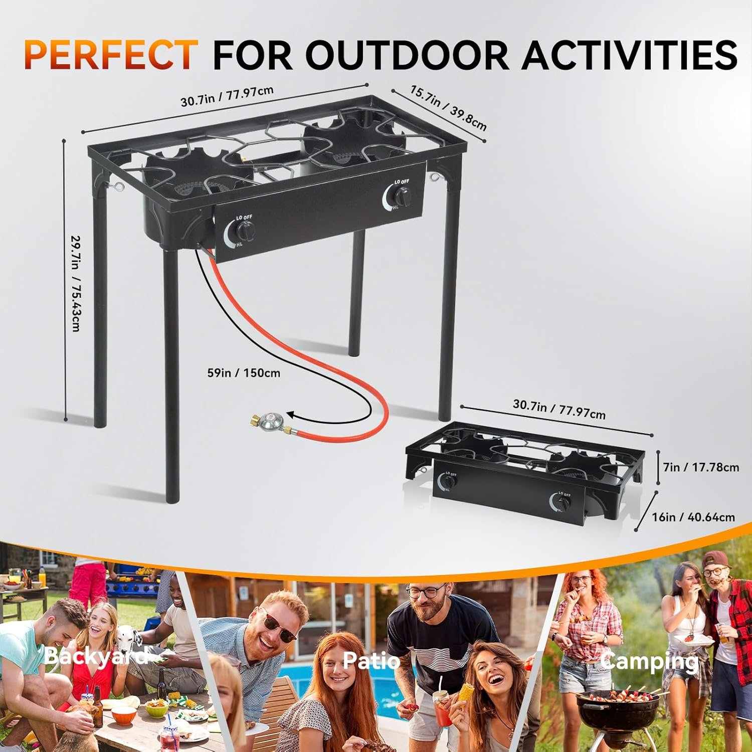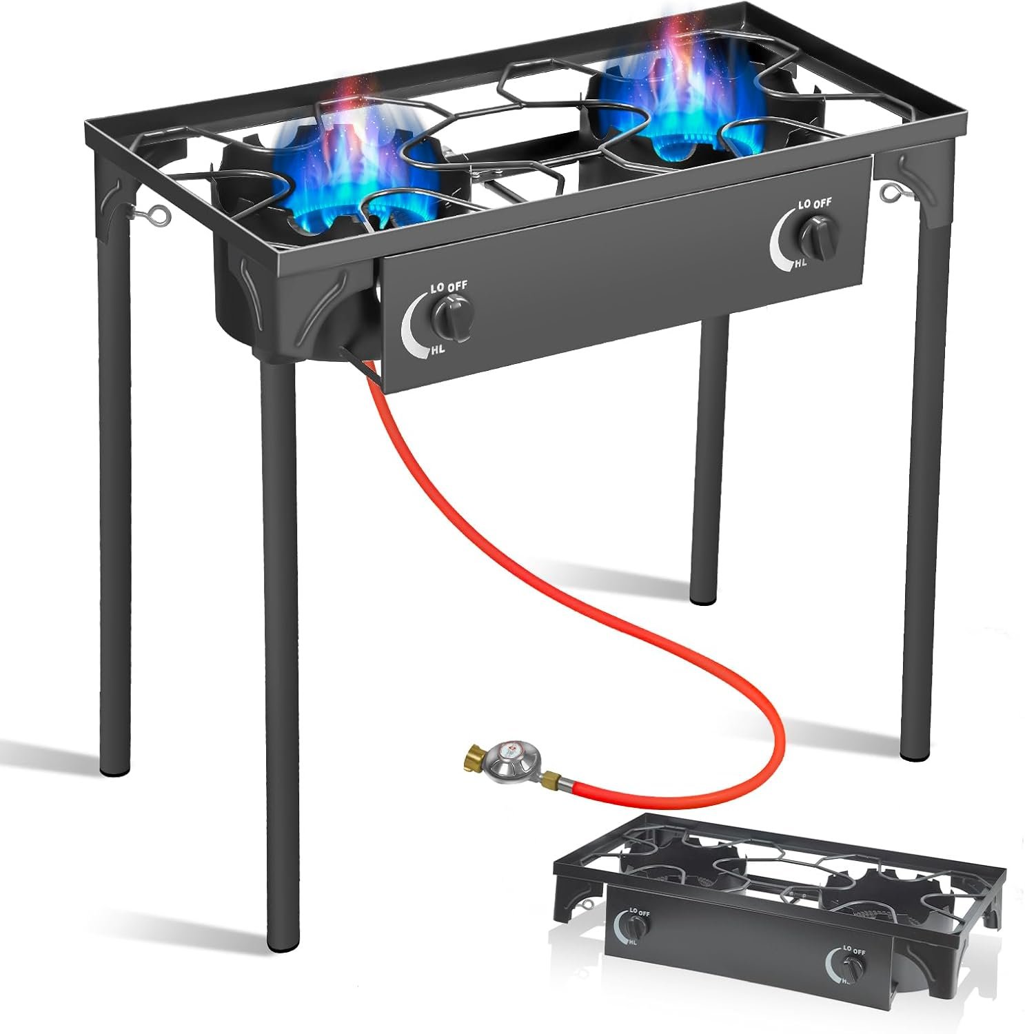 BACOENG Camping Stove Gas 10 kW Including 1.5 m Hose and 50 mbar Pressure Regulator