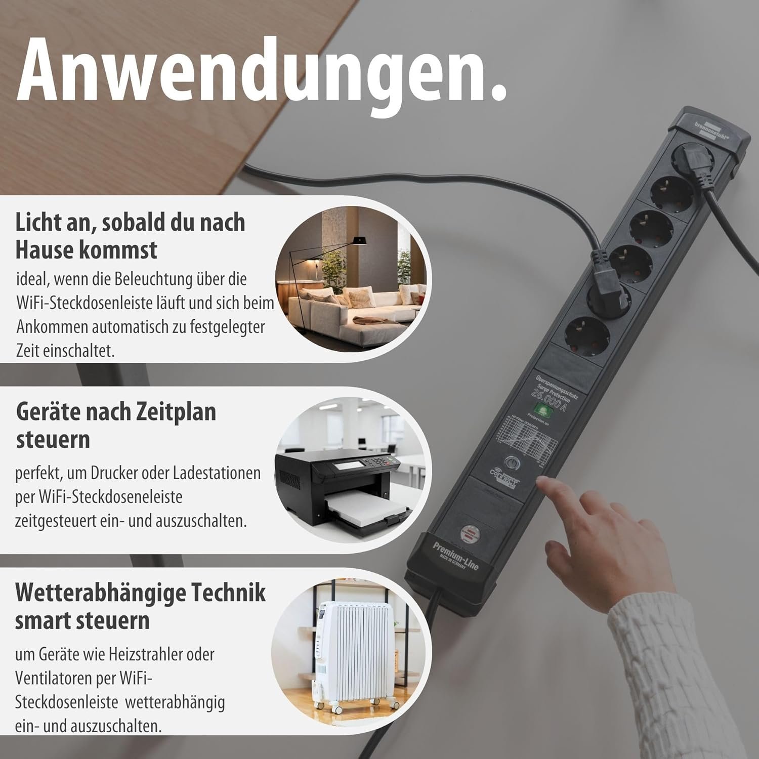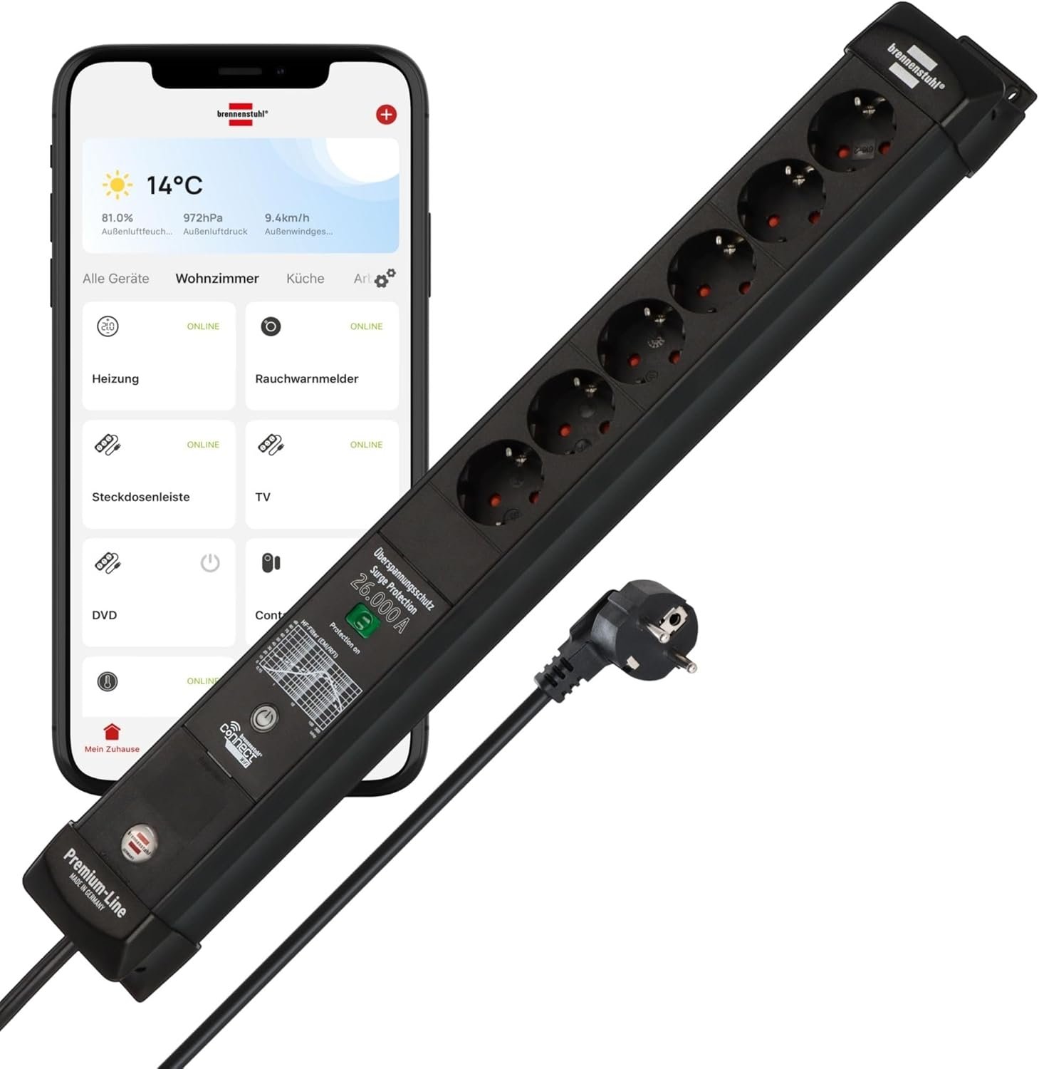 Tags: 6way, Black, Brennenstuhl, H05VVF3G1.5, PremiumLine, Smart, ÜSS