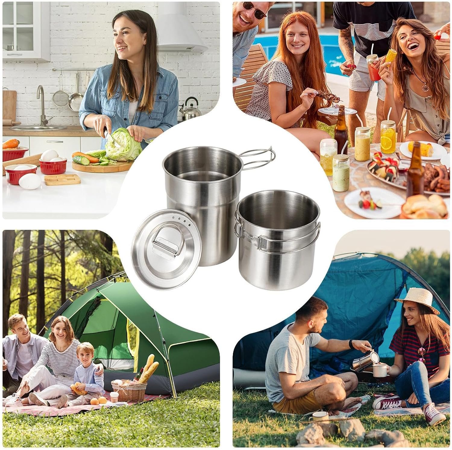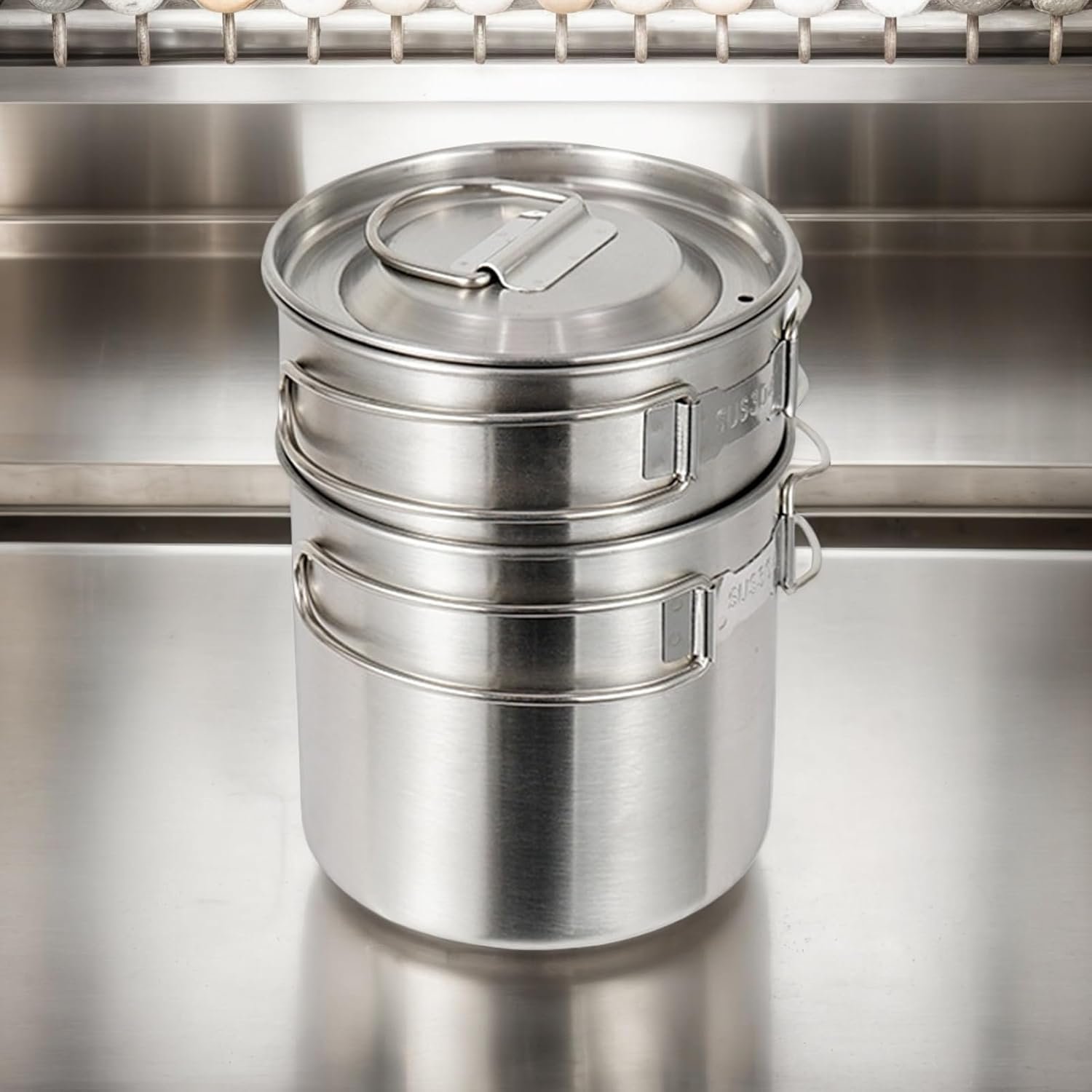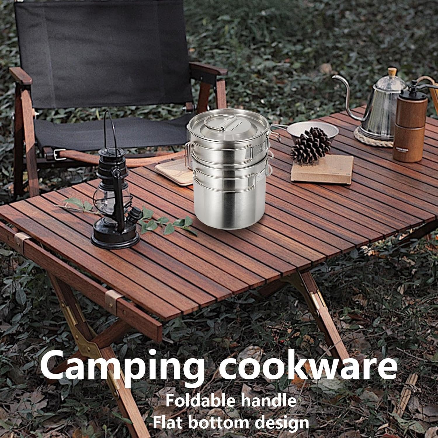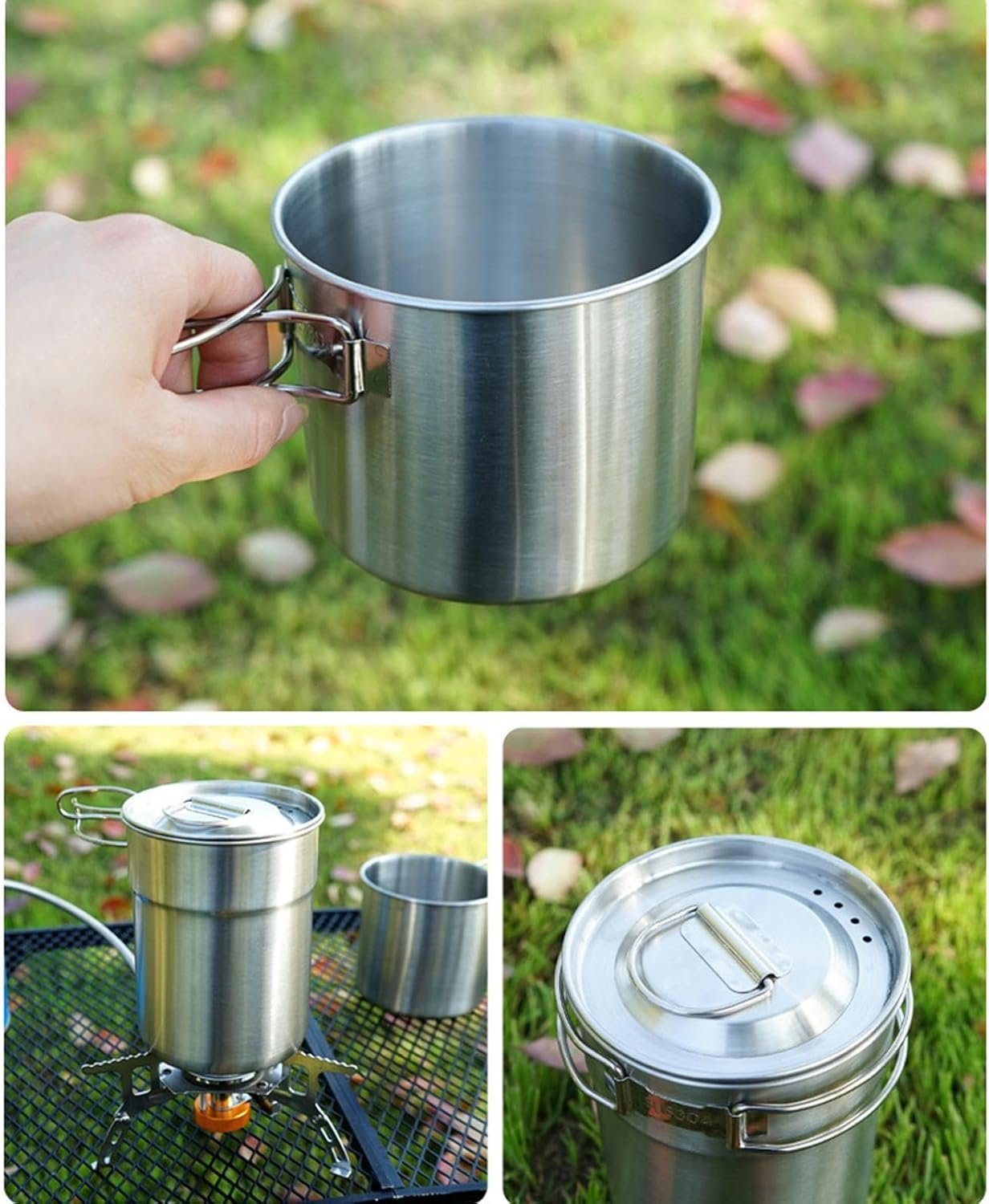 Leichtes Edelstahl-Design: Hergestellt aus hochwertigem Edelstahl für widerstandsfähige und leichte Leistung: leicht zu tragen während Rucksackreisen, Wandern oder Campingausflügen: perfekt für Outdoor-Enthusiasten, die tragbare Kochausrüstung suchen