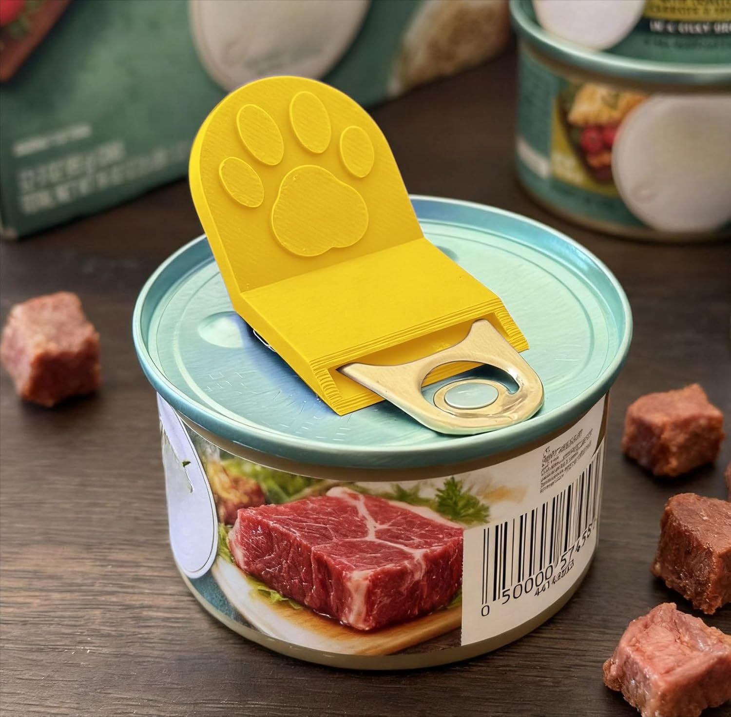Cat Food Opener Paw Shape Food Accessories Cat Food Utensils Easy Scoop and Serving Tool for Pet Kitten Home Indoor Outdoor Kitchen Daily Feeding (Yellow)