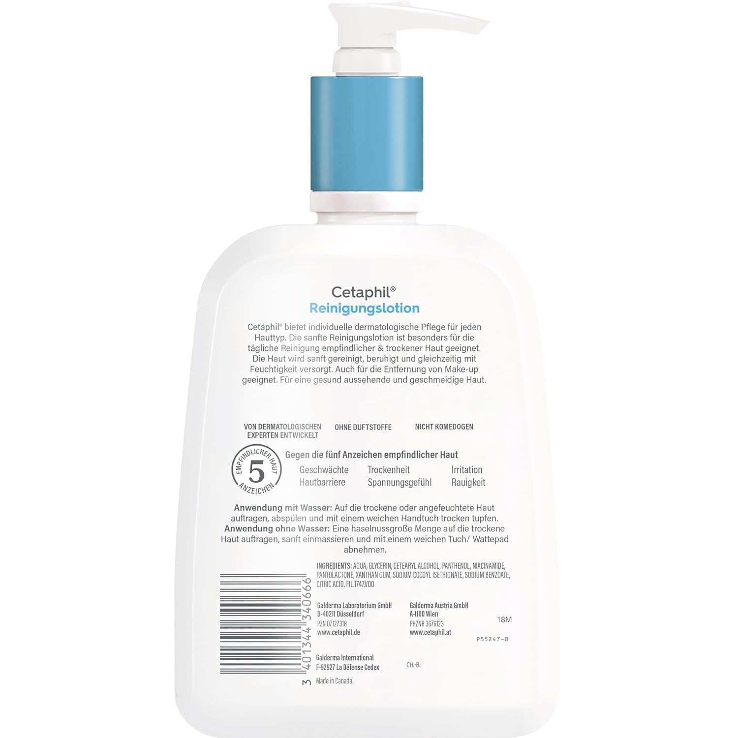 CETAPHIL Cleansing lotion, 460 ml, for dry, sensitive skin, facial cleansing, can be used with and without water, gently and effectively removes dirt, soap-free, no eye burn
