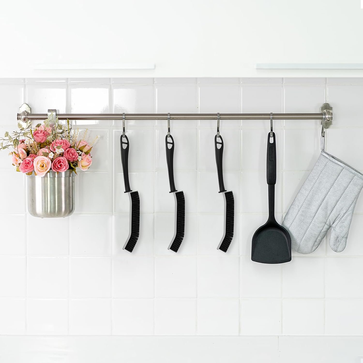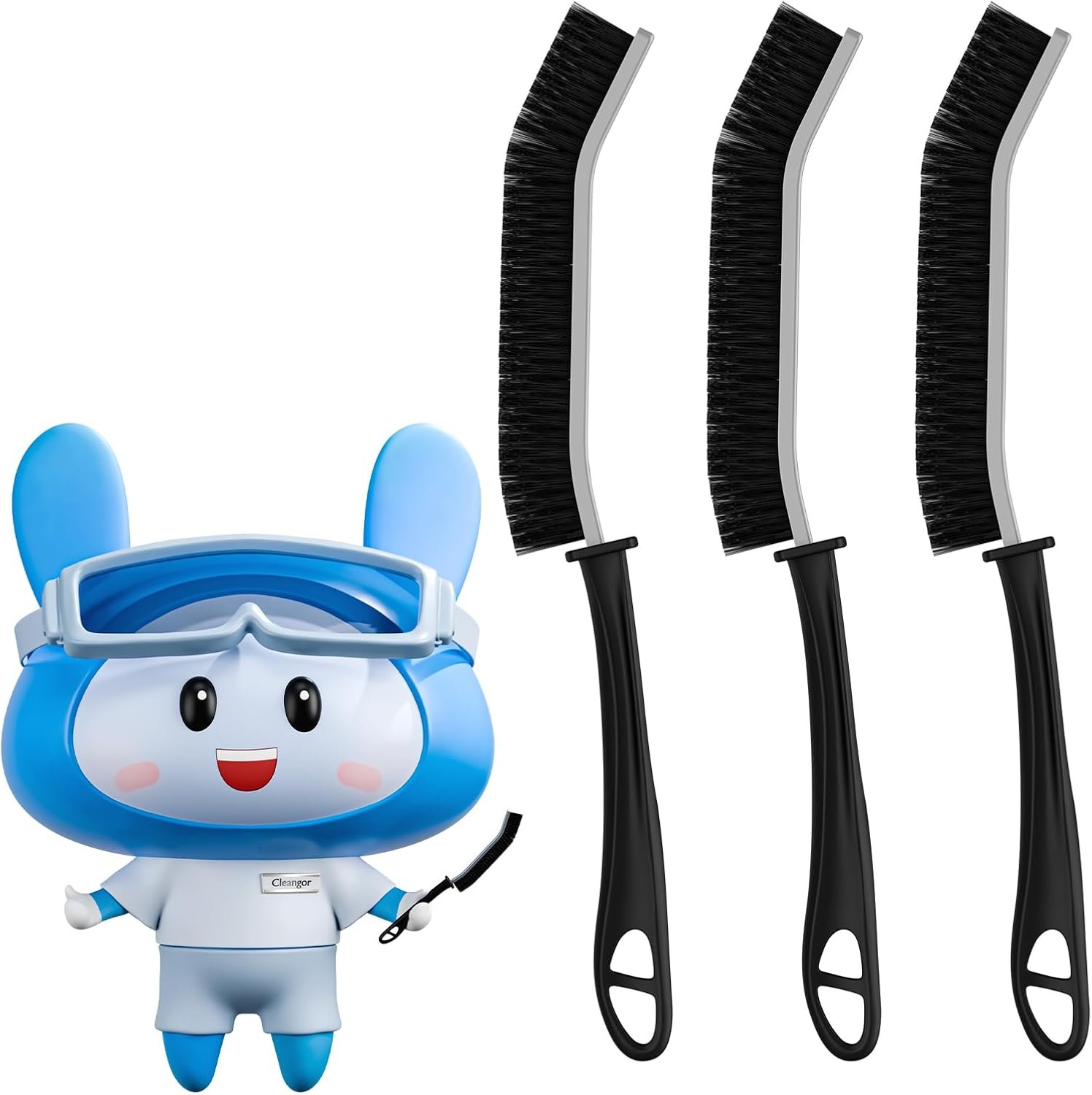 Cleangor Hard Bristle Grout Brush Bathroom & Tiles – Ergonomic Cleaning Brush with 15° Narrow Brush Head for Corners, Cracks, Toilet (3, Black)
