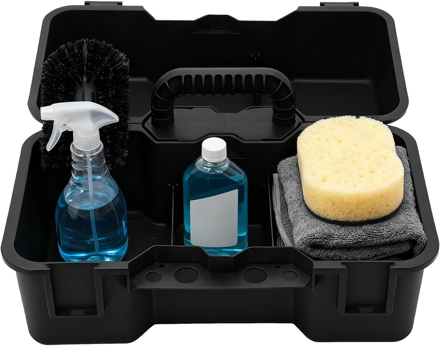Space Saving Design: The cleaning basket with handle boasts a space-saving design, allowing it to fit seamlessly into tight areas, providing an efficient way to organize supplies at the office or in your car trunk, without compromising accessibility or functionality for clutter-free environments